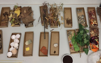 Es wurde mal "ganz anders" gebastelt - ohne Kleber, dafür mit viel Fantasie und Kreativität. Äste, Laub, Karottenschalen, Schafswolle, Piniennadeln, Nussschalen und vieles mehr: Alle materilaien, die an diesem Tag benutzt wurden , kamen aus der Natur. Daraus wurden Mobiles, Figuren, Tiere und Landschaften gestaltet. Alter der Kinder: 7-12 Jahre.